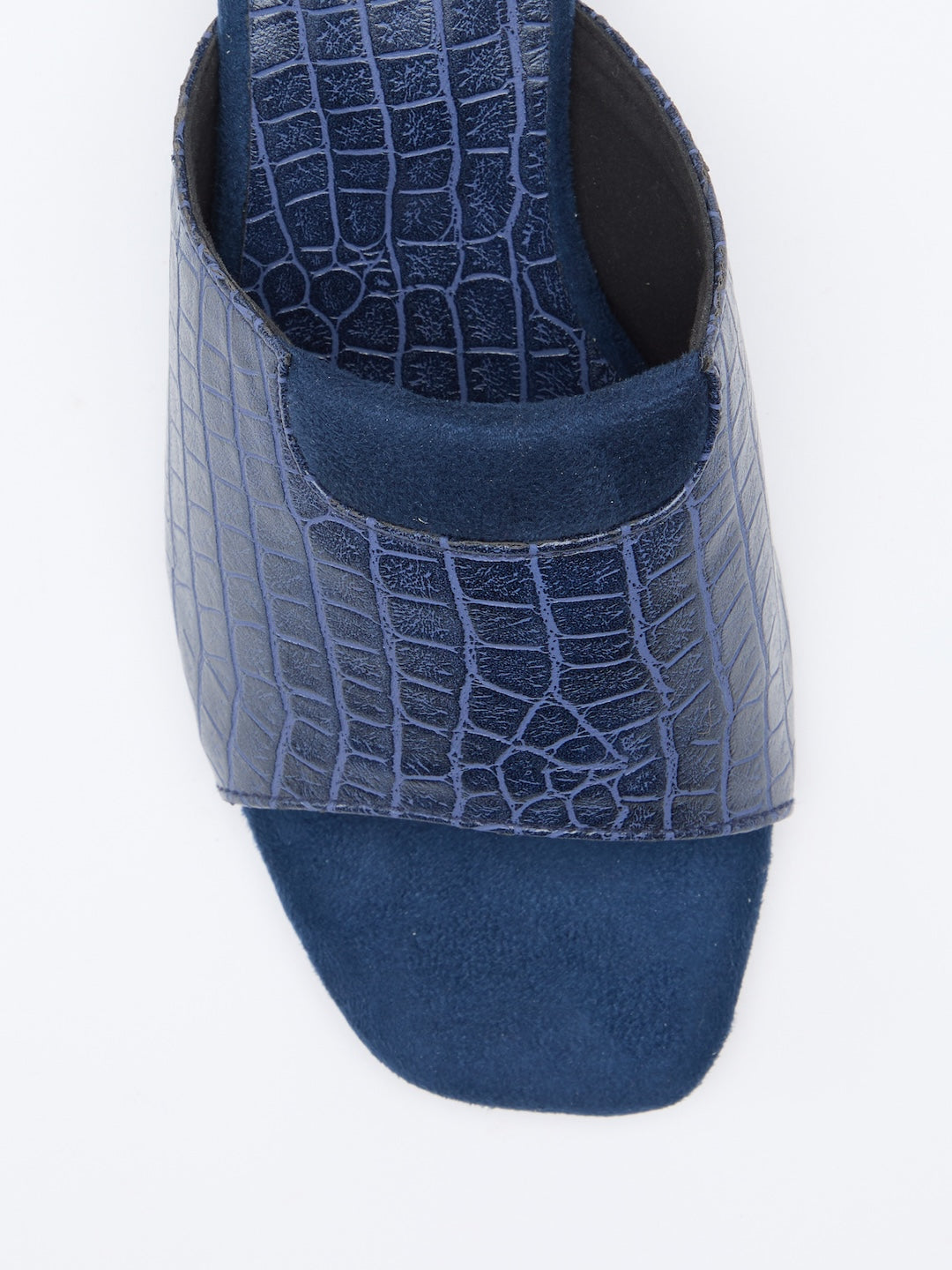 Muted Muse Slides blend suede and croc finishes in a quiet, refined palette — a modern classic made for understated moments.